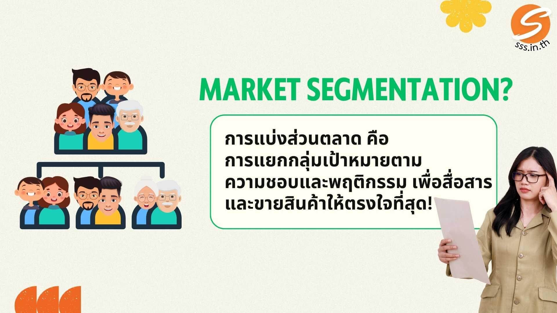 การแบ่งส่วนตลาด คือการ “แยกกลุ่มคน” ที่มีความชอบ ความต้องการ หรือพฤติกรรมคล้ายๆ กันออกมา เพื่อที่แบรนด์หรือธุรกิจจะได้รู้ว่า ควรขายอะไร ให้ใคร และจะสื่อสารยังไงให้ตรงใจที่สุด