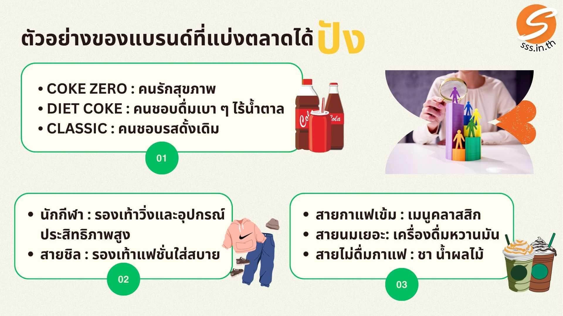 รูป 2 ตัวอย่างของแบรนด์ที่แบ่งตลาดได้ดี เช่น 1. Coca-Cola, Nike และ Starbucks